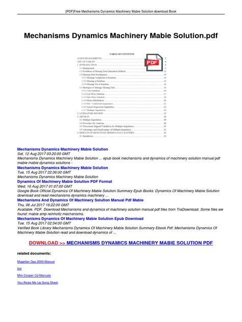 Read MECHANISMS DYNAMICS MACHINERY MABIE SOLUTION Doc Internet Archive