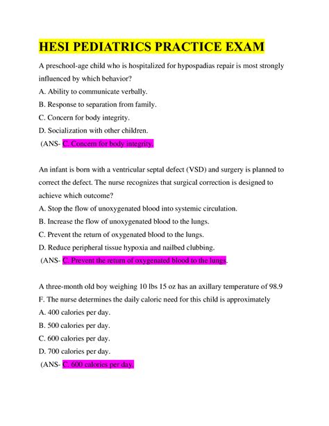 Online PDF Hesi Test Questions On Pediatric 149797 PDF Doc ManyBooks